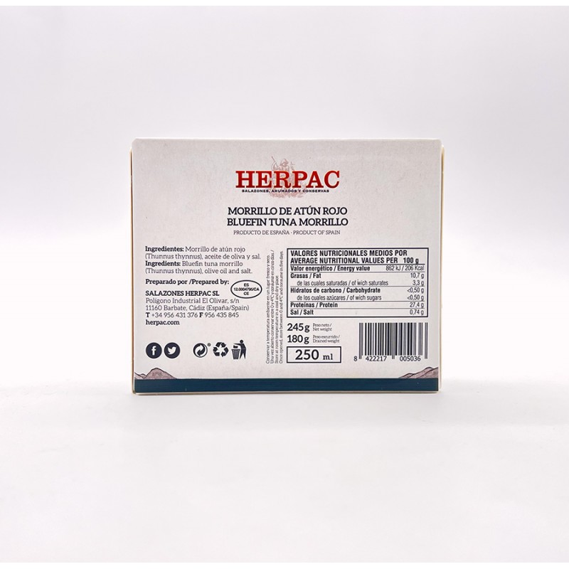 Morrillo de atún rojo en aceite de oliva, Herpac 245 gr.