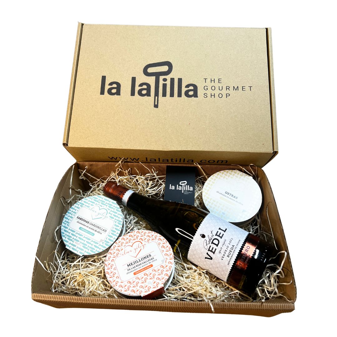Una selección gourmet inspirada en los sabores del Atlántico. Este pack reúne una botella de vino verdejo DO Rueda Robert Vedel acompañada de una cuidada selección de conservas ahumadas que evocan la tradición y la riqueza gastronómica del mar. Una combinación perfecta para disfrutar de una experiencia gourmet llena de carácter.