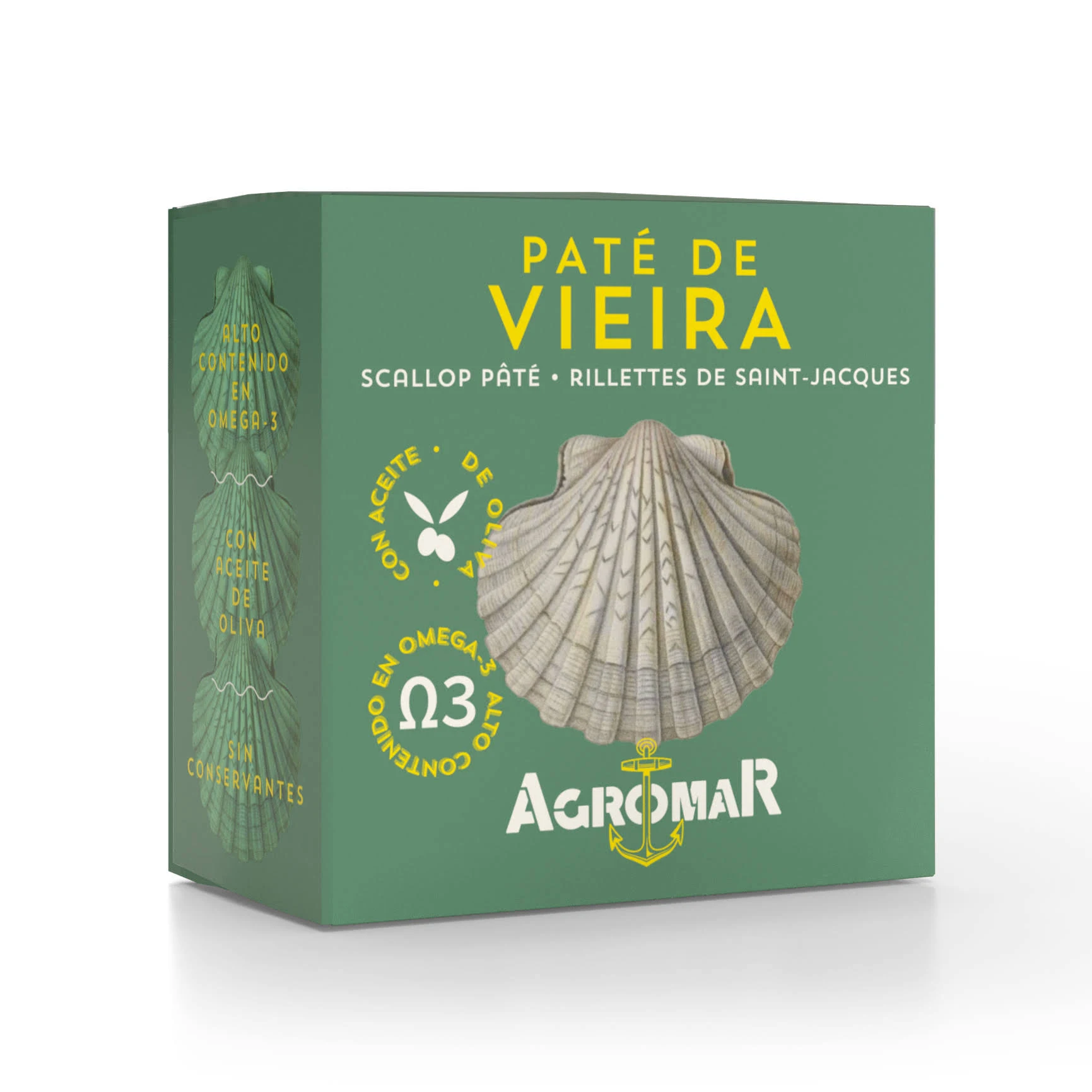 Paté de vieira de Agromar, elaborado con ingredientes de primera calidad para ofrecer un sabor delicado y sofisticado. Ideal para untar en tostas, acompañar con pan crujiente o sorprender en un aperitivo gourmet.